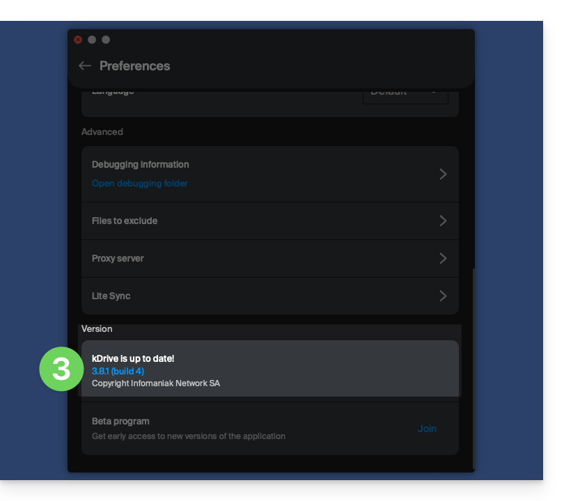 - utilizzare l'applicazione WebDAV di scelta al posto di l'applicazione ufficiale kDrive (unica soluzione se questa non è disponibile sul proprio sistema operativo, ad esempio macOS 10.14.6),
