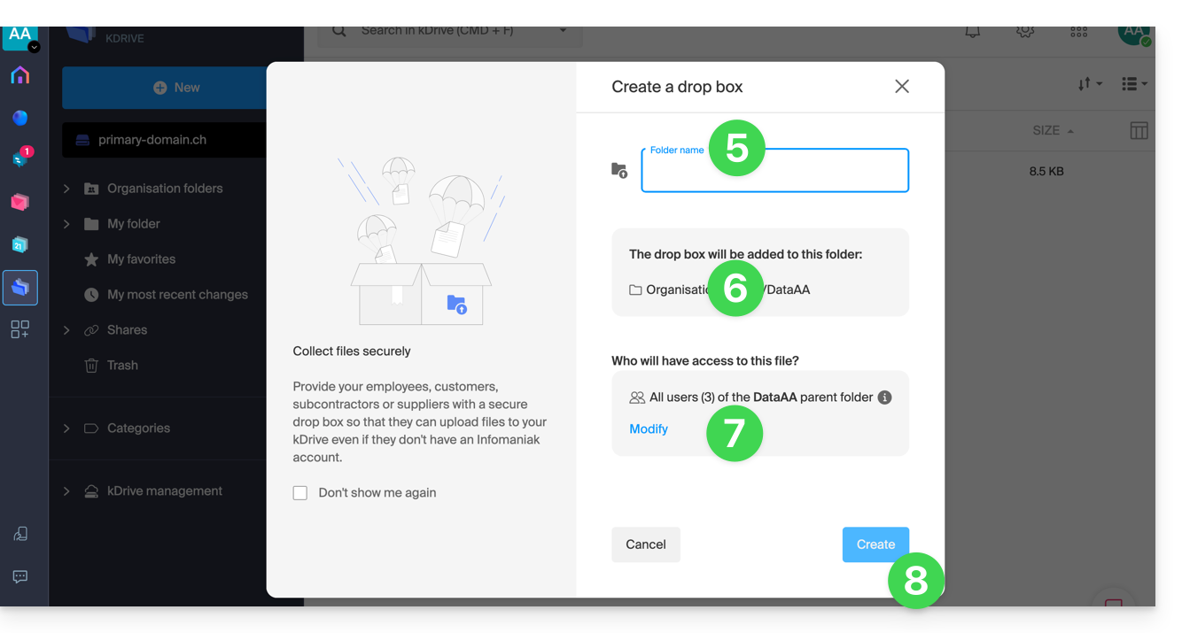 Questo numero (nell'esempio 123456) è il proprio identificativo kDrive (IDkDrive).