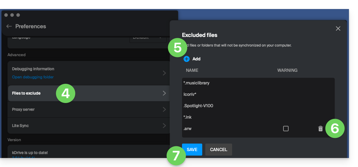 Questa guida spiega come escludere file e cartelle dalla sincronizzazione kDrive sul tuo computer e quali sono i tipi di file già esclusi per impostazione predefinita.