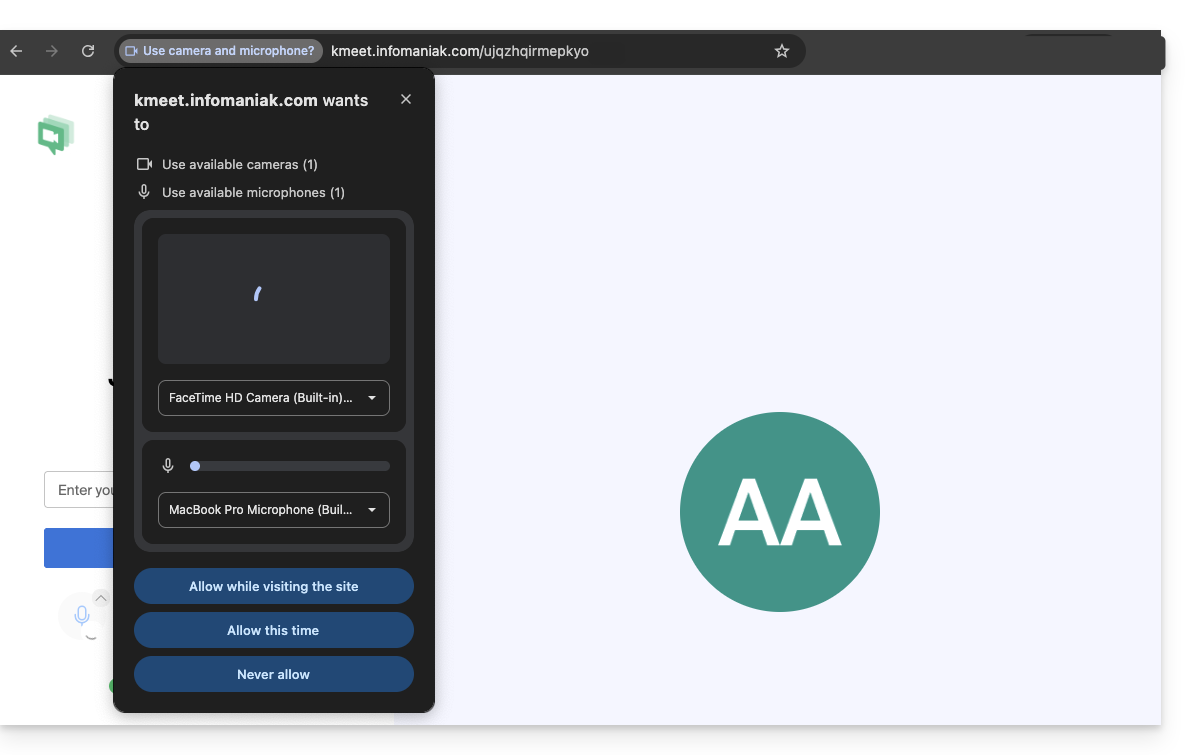 - Inserisci kmeet.infomaniak.com in un browser come Chrome o Safari.
