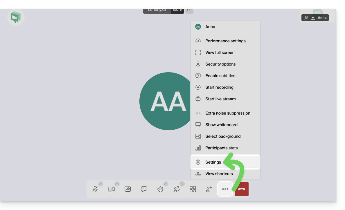 - Una volta nella riunione, clicca su il menu delle azioni ○○○ nella barra degli strumenti di kMeet.