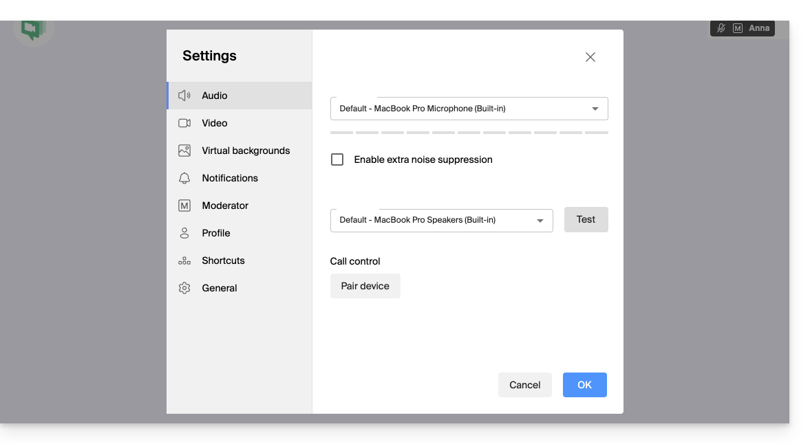 - Crea o unisciti a una sala riunioni.