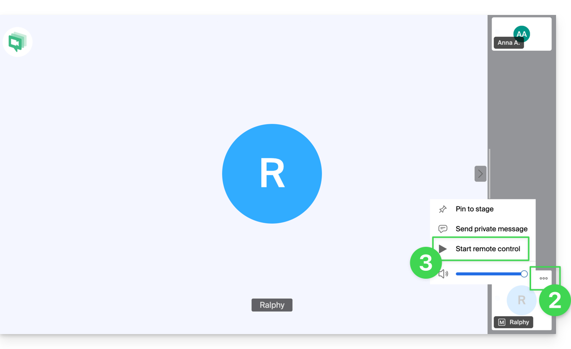 - L'utente A deve fare clic su Avvia controllo remoto, e lo stesso percorso per interrompere il controllo: