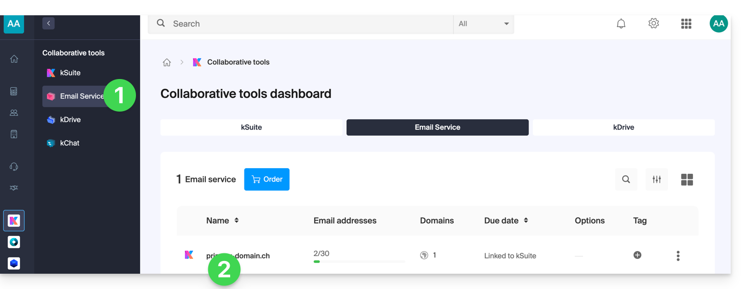 - Clicca qui per accedere alla gestione del tuo prodotto nel Manager Infomaniak ( hai bisogno di aiuto?).