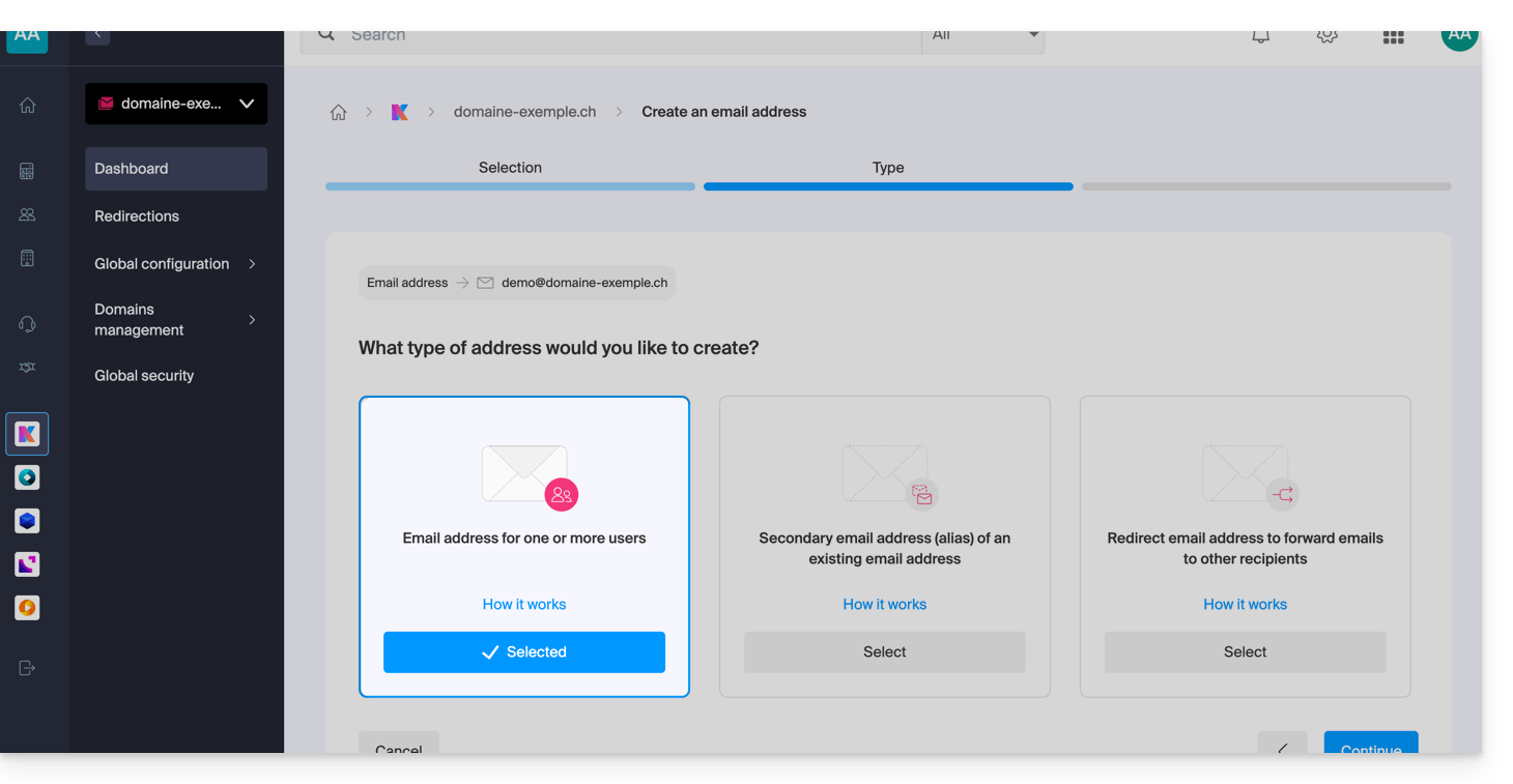 Opzione 4: creare completamente l'account Infomaniak associato al nuovo indirizzo email