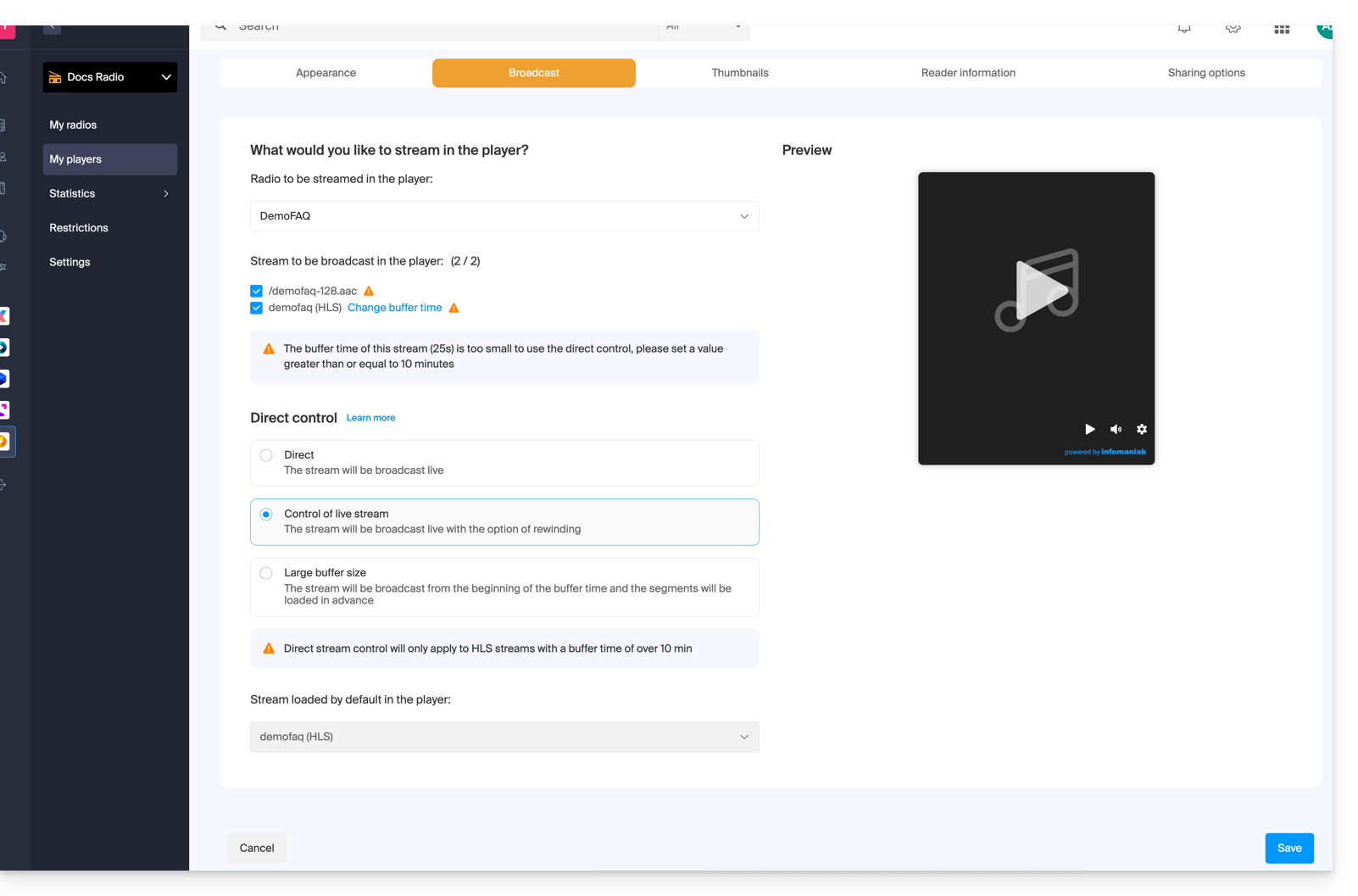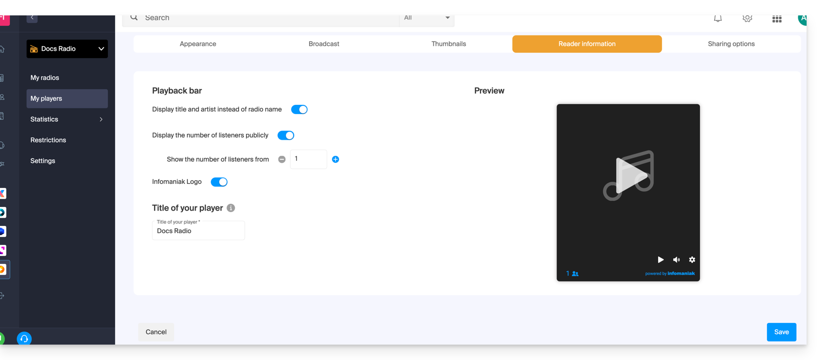 Questa guida dettaglia la configurazione di un Player per la tua Radio in Streaming Infomaniak.
