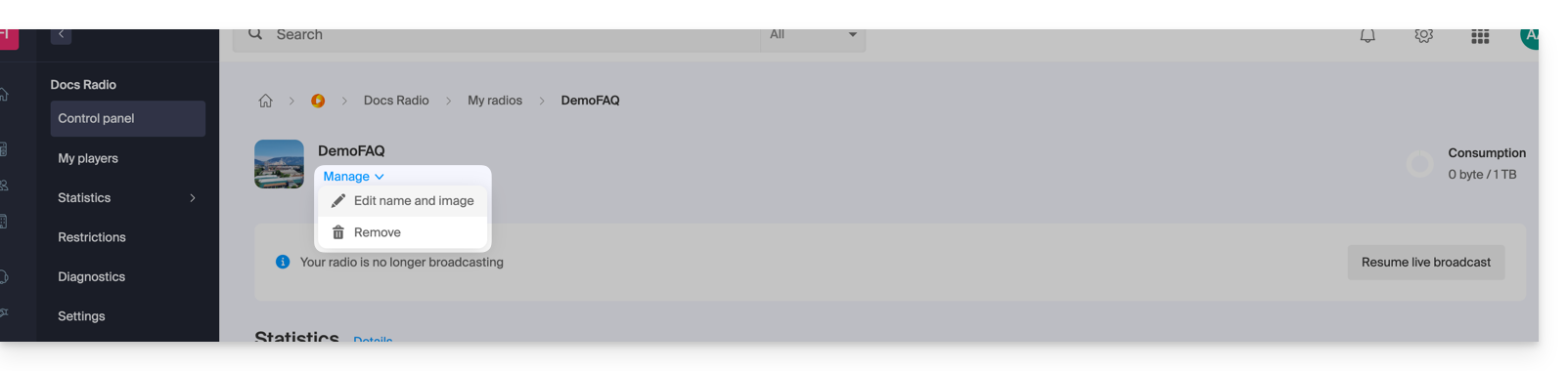 - Creare o modificare un flusso HLS nel tuo prodotto Streaming Radio.