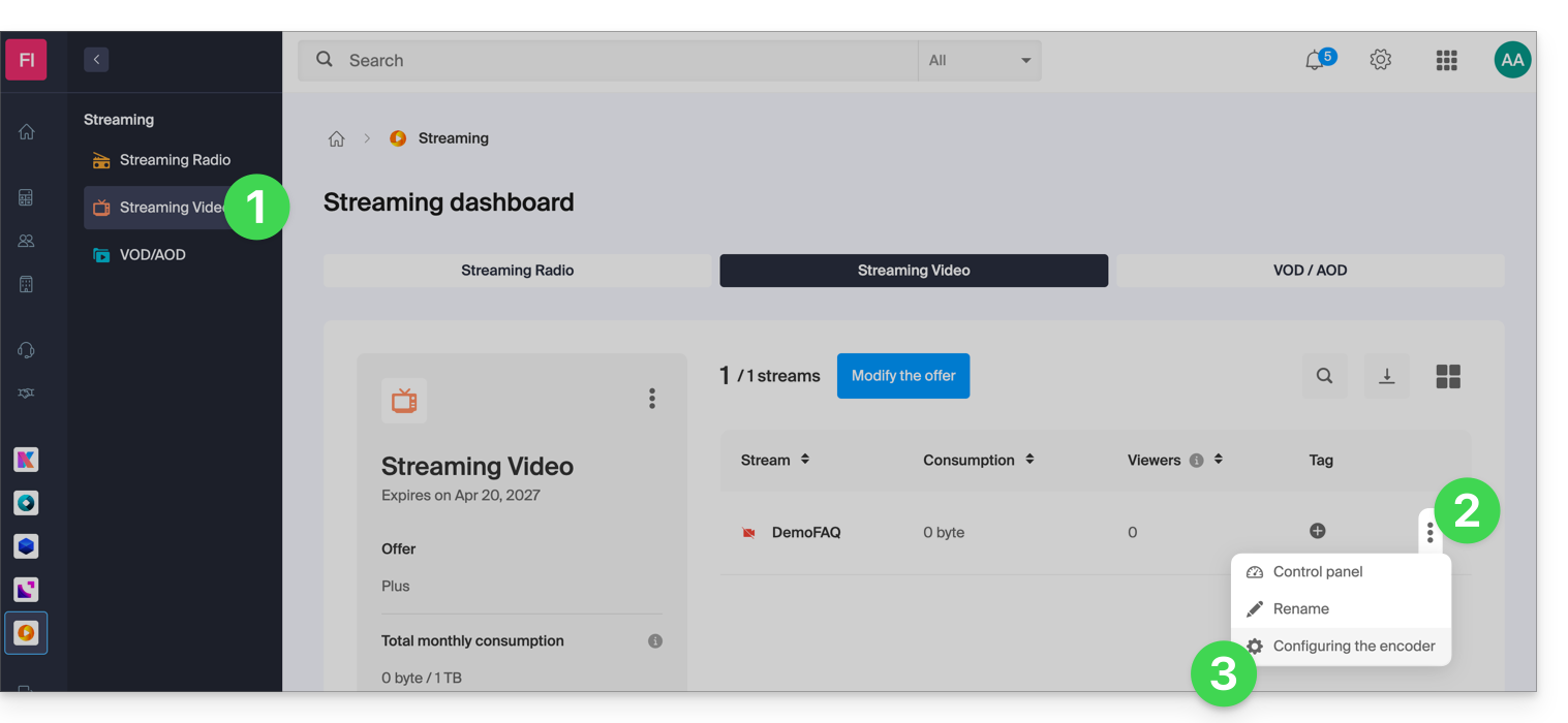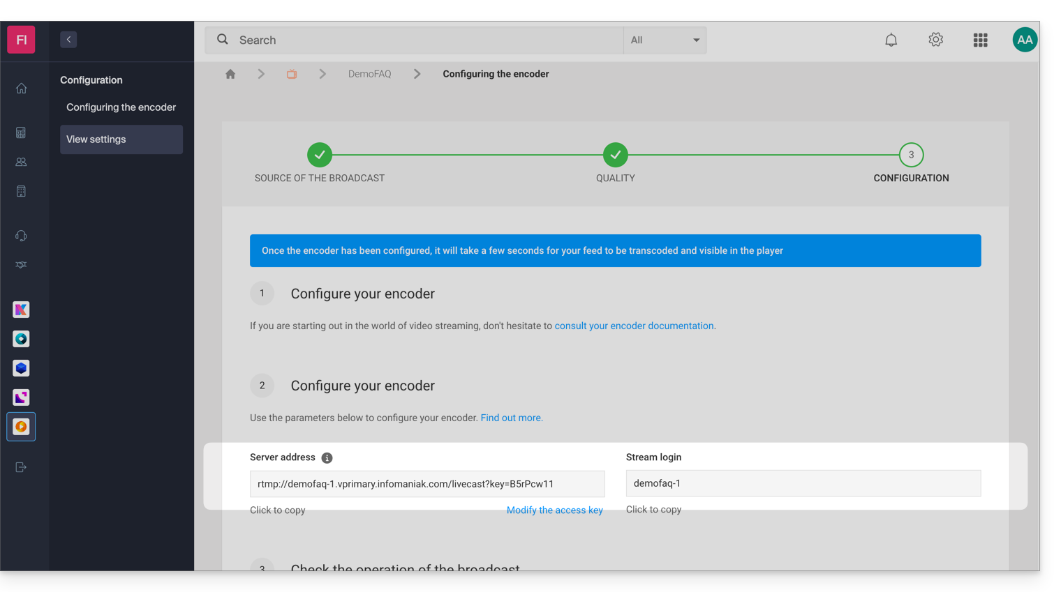 Questa guida vi permette di utilizzare rapidamente le funzioni essenziali del Streaming video Infomaniak.
