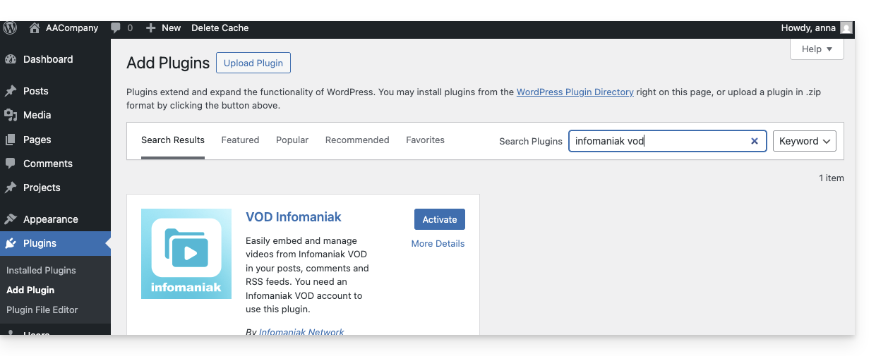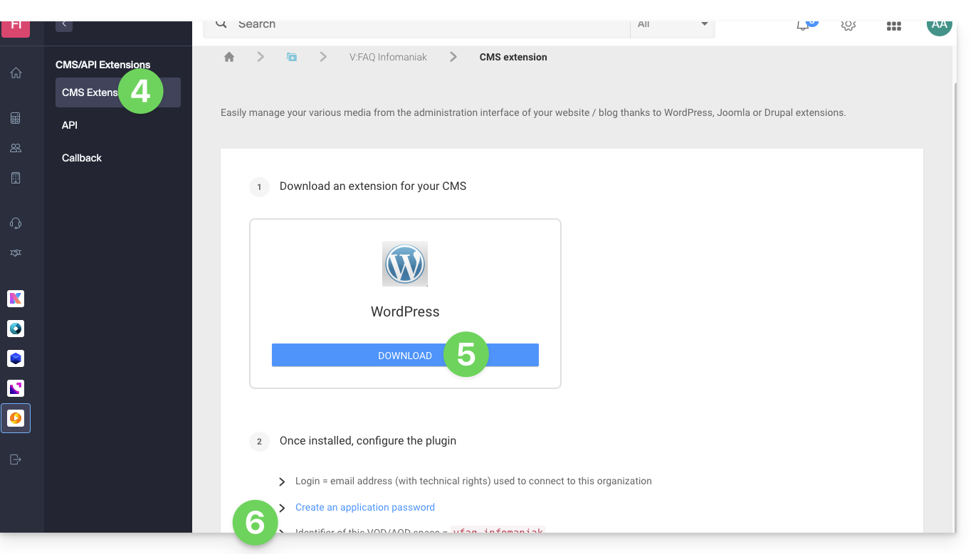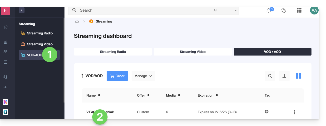 - Clicca qui per accedere alla gestione del tuo VOD/AOD sul Manager Infomaniak (hai bisogno di aiuto?).