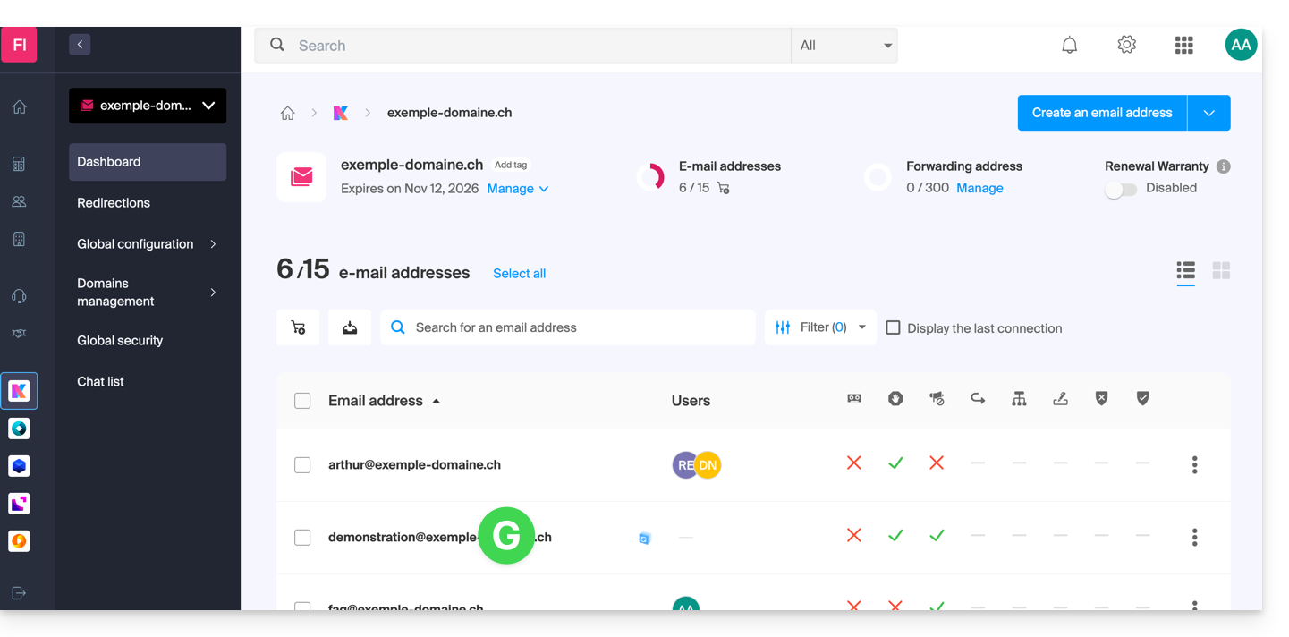 - Gestione unificata di tutti i tuoi indirizzi e-mail Infomaniak.