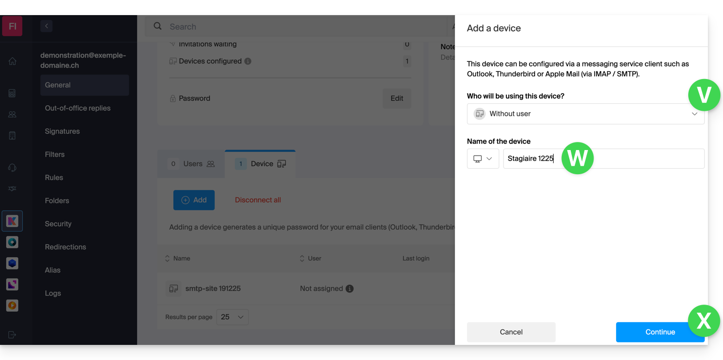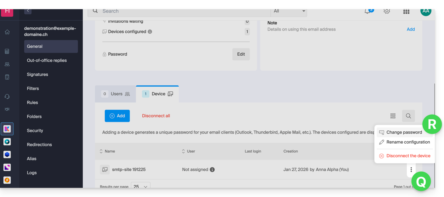 - Se necessario, riattacca gli indirizzi e-mail da gestire con Mail Infomaniak.